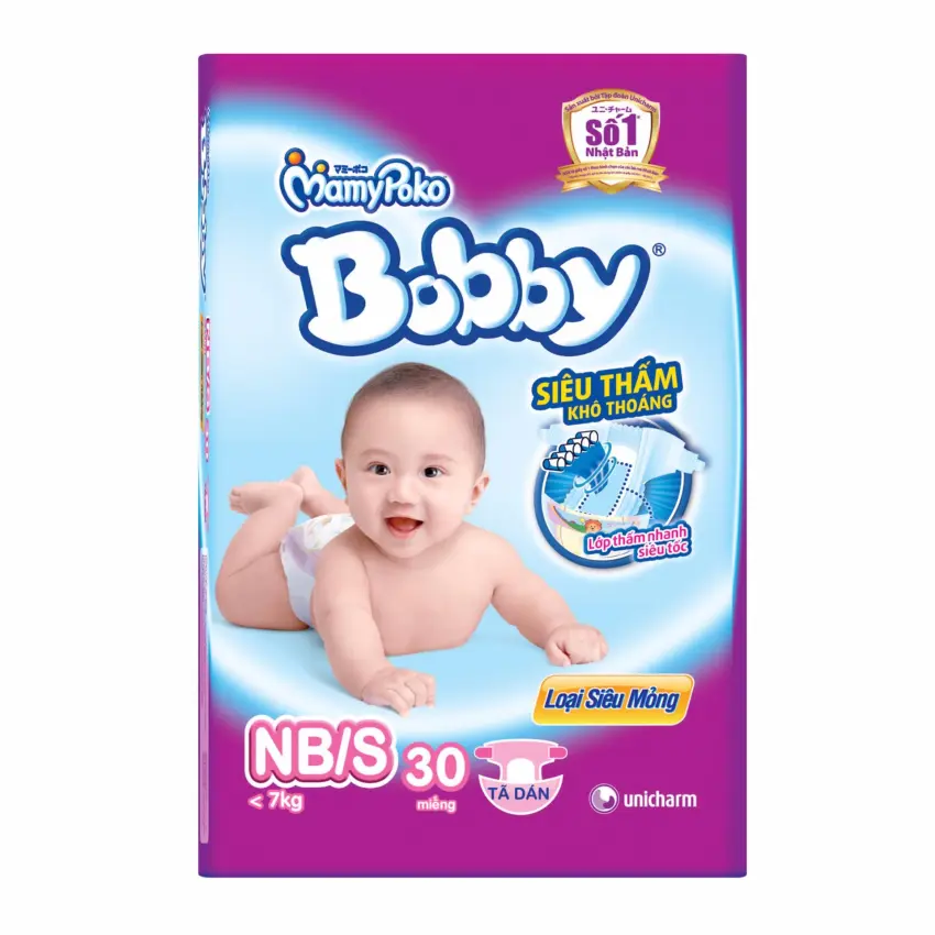 Tã dán Bobby S30 Size S32 Bịch gồm 32 miếng cho bé dưới 6kg